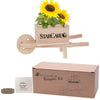 - Includes wooden wheel barrow planters, seed packet, peat pellet, and natural kraft box with printed planting instructions