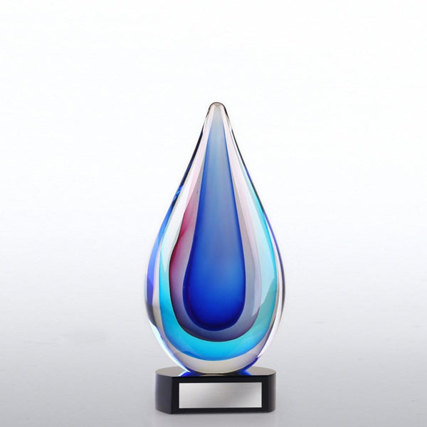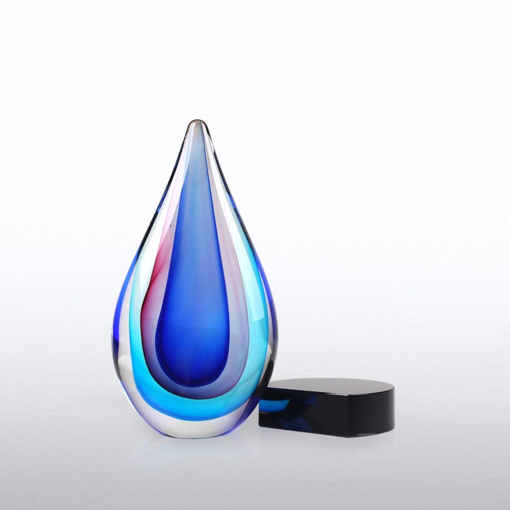 Art Glass Trophy - Blue, Pink and Aqua Teardrop
