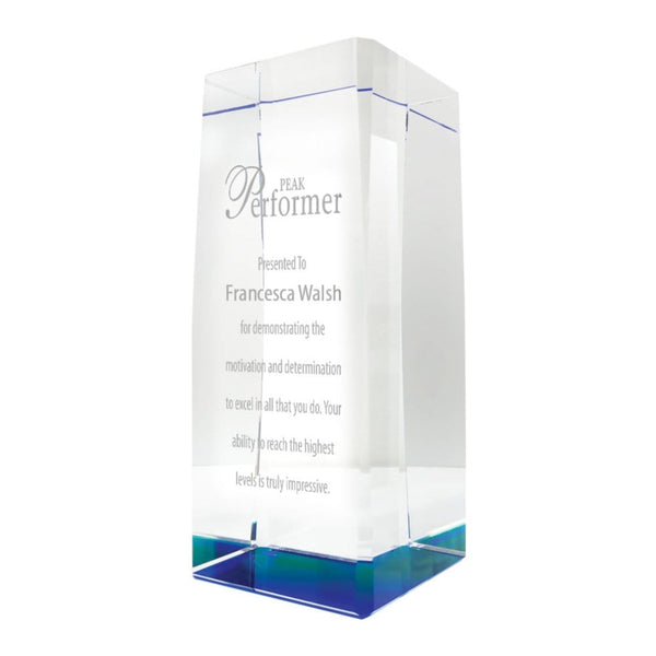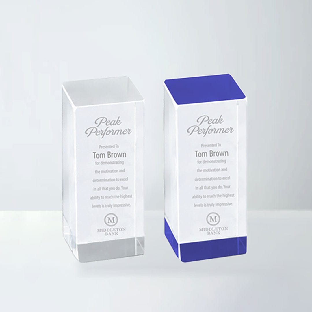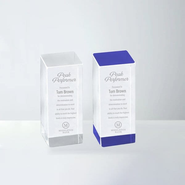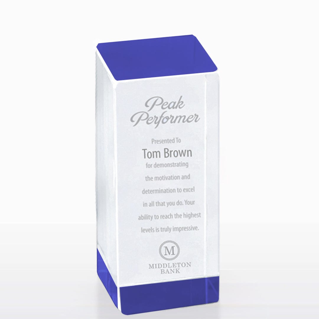 The Blocks of Success Mini Crystal Trophy - Blue may be small, but it makes a big impact! Crafted from high-quality crystal with a striking blue accent, this trophy boasts a sophisticated and executive look that's perfect for celebrating outstanding achievements. It delivers premium style without the premium price, making it an excellent choice for recognizing your star performers. Personalize the trophy with a logo, name, or custom message to create a truly memorable award. Arriving presentation-ready in a sleek display box, it's ideal for end-of-year awards, executive recognition, and special corporate initiatives.