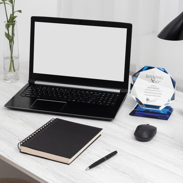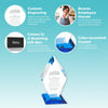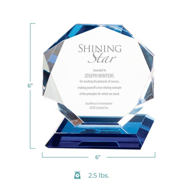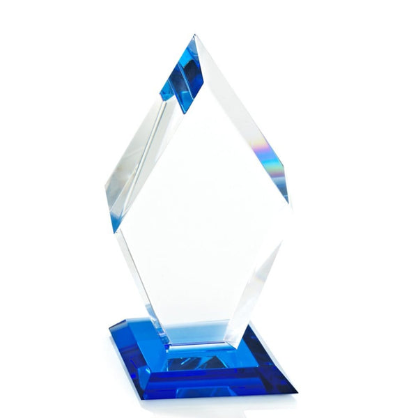 Accented with a colored base, these elegant crystal trophies are the perfect complement to any contemporary setting. Up to three lines of personalization and your choice of a pre-written verse are included.