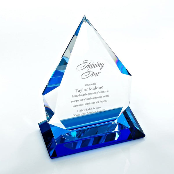 Blue Luminary Crystal Trophy - Blue Tear Drop