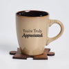 - Handcrafted mug has a beautiful tan finish and features the message "You're truly appreciated"