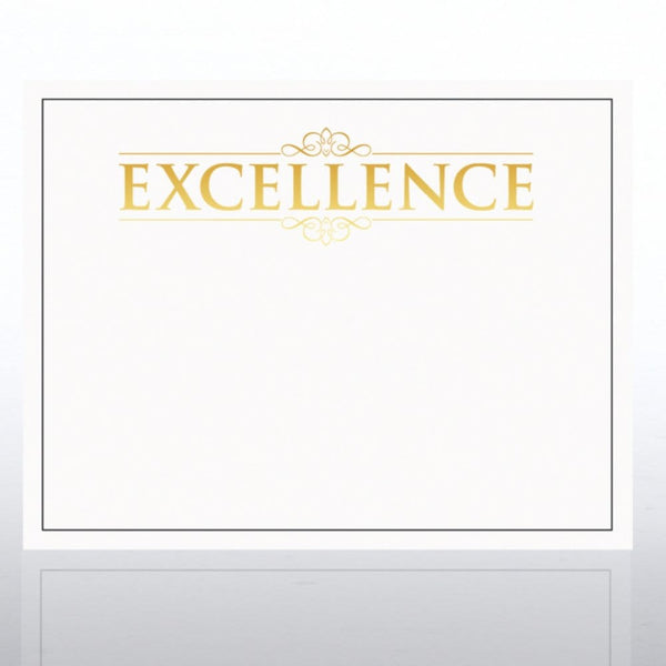 For excellent efforts or performances, this certificate paper design fits the occasion perfectly! Each beautiful, 40 lb. sheet is gold foil-stamped with our elegant Excellence sentiment and coordinates perfectly with our Excellence foil-stamped certificate folders. Print your award certificates on this acid-free paper for archival quality and lasting beauty. When you present your awards, put them in a folder or frame – the more you value the presentation, the more the recipient is going to value the award.