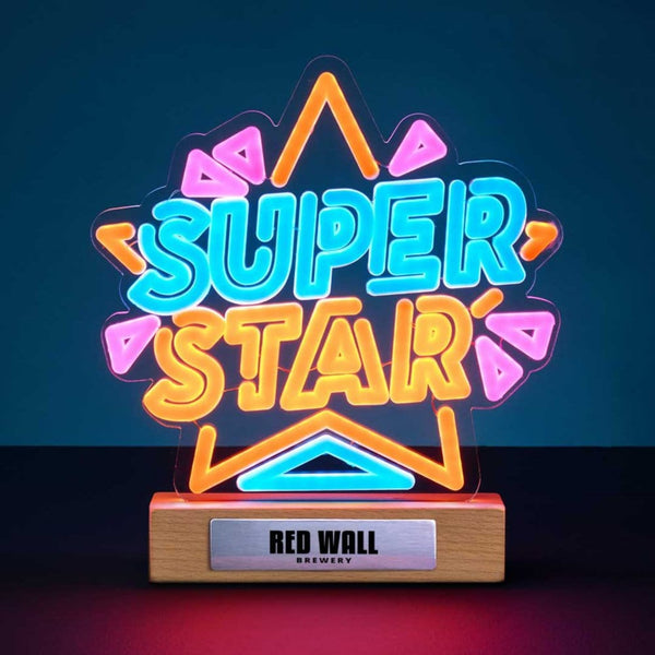 Ideal for end-of-year award ceremonies, employee recognition programs, or any celebration of your team’s exceptional contributions, the Glowing Gratitude Neon Light Trophy - Super Star is a bright and bold way to say "thank you" for all they do.