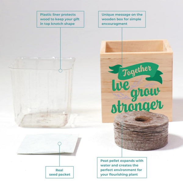 • Includes a lavender seed packet, a peat pellet, a wooden cube planter, and planting instructions