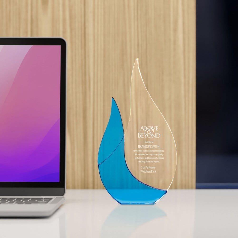 Their achievements won't be missed with this crystal trophy, perfectly complemented with a gorgeous blue accent. Choose a pre-written verse or graphic title and add... Read More