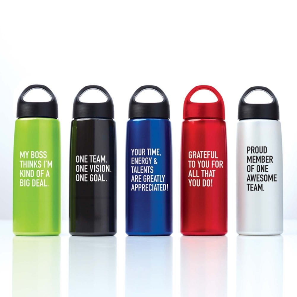 Your appreciation will radiate on this sleek water bottle. It features a wide-mouth for easy filling and is top rack dishwasher safe!