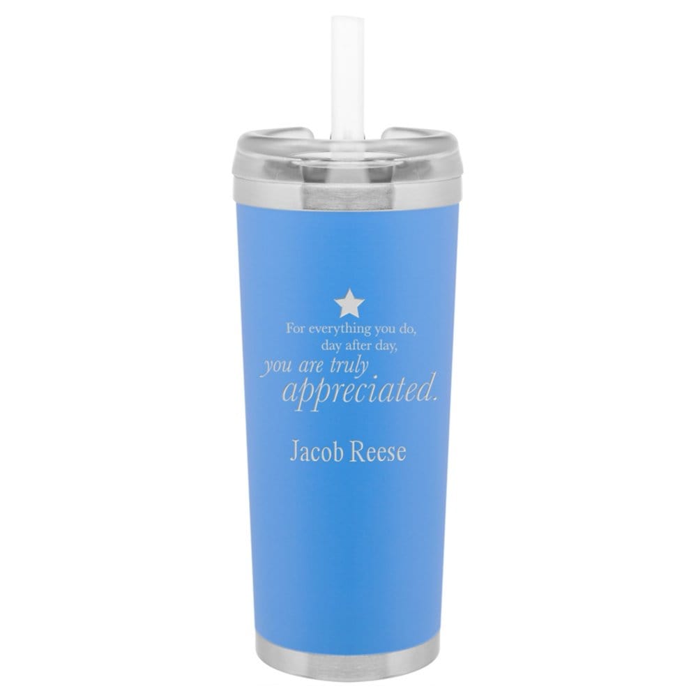 The many colorific options make this tumbler wonderfully customizable! Choose your color, write your message, and it'll be engraved on the outside for the perfect recognition or appreciation gift.