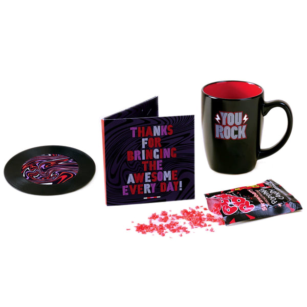 - Set includes a 12 oz ceramic mug, a mini record coaster, and a pack of Pop Rocks